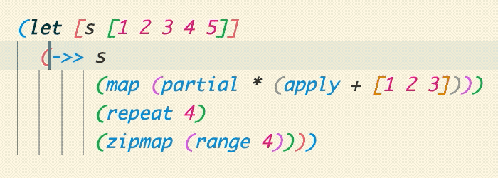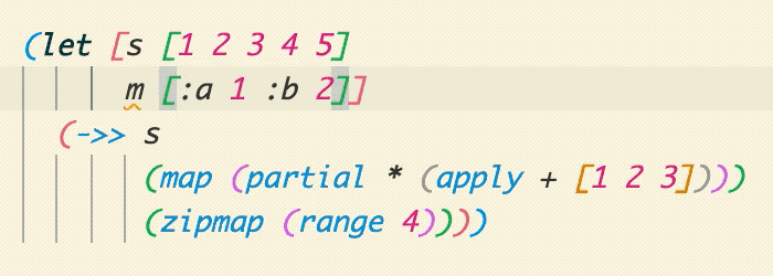 Rewrap | Changes enclosing brackets of the current form to parens/square brackets/curlies/double quotes and set (#{}) ![]() |